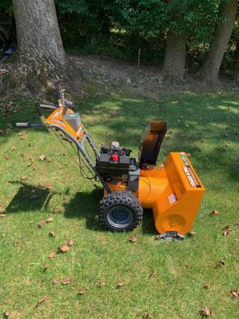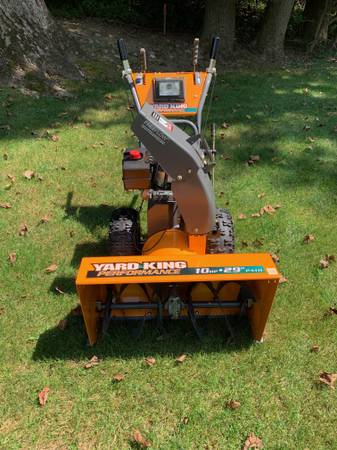 Yard King, 29 inch path, 10 HP, electric and pull start, 6 speeds forward and 2 reverse, light, and drift bars.