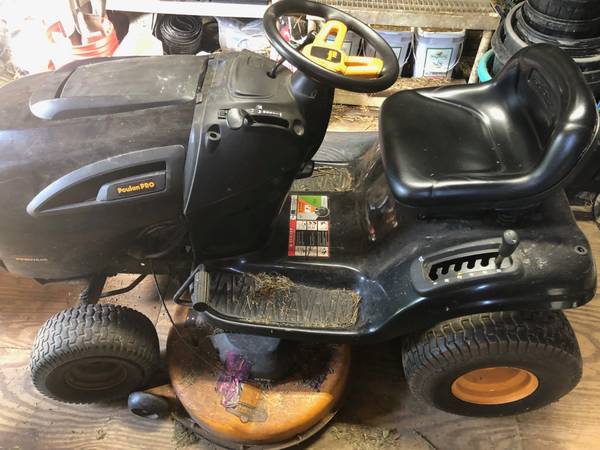 I have a used Poulan PRO riding mower for sale. The motor is in good condition, but the mower deck is sheered and needs either welding or replacement. The front wheels could use re-alignment and some minor work. Original manuals included.