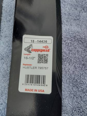Copperhead 16 1/2" Mower Blades Part # 15-14436 Hustler Part # 795757 High Lift Mower Blades For 48" Quantity - 3 New $20 for the set of 3 BMPN 0603 Call or text