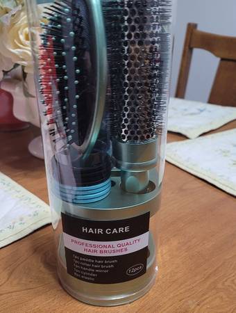 new never open 12 Piece Teal Essential Hair Care Professional Quality Boxed Hair Brush Gift Set comes with: 1pc. paddle hair brush 1pc. roller hair brush 1pc. handle mirror 1pc. cylinder 8pc....