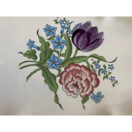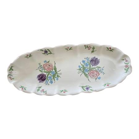 25" Long 1980s Vintage Hand-Painted Platter Pattern French Bouquet...
