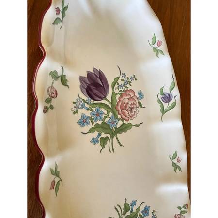 25" Long 1980s Vintage Hand-Painted Platter Pattern French Bouquet by Mann Extremely large and Gorgeous Seymour Mann "French Bouquet" Pink/Purple Flowers Fluted Scalloped edges Extra Large Serving...