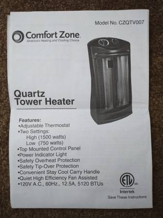 Pre-Owned Comfort Zone Quartz 1500 Watt Tower Heater.