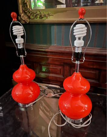 This beautiful pair of vintage lamps can be yours. They are in great condition for age. They still have the matching finials. No shades. 23” tall to the top of the finial. Approximately 8 1/2 diameter at the widest point. They have a sleek design and would look great in a lot of decors.
