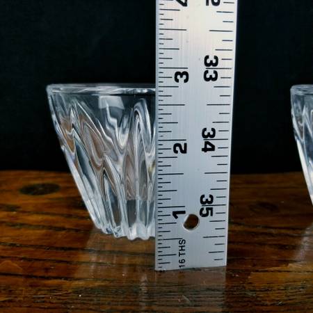 Set of two Mikasa "City Style" votive candleholders. This line has been discontinued from Mikasa. Candleholder is 3.25” in diameter, and is 2.75” tall. Each weighs 11.9 oz.