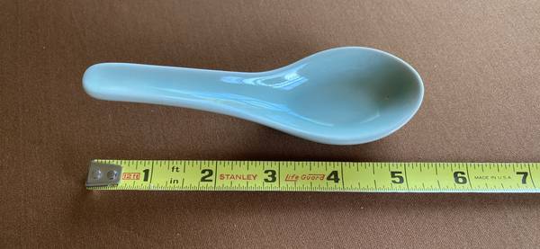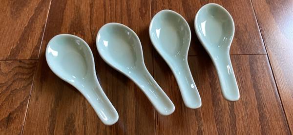 SET OF 4 ASIAN JAPANESE CHINESE WONTON SOBA RICE PHO RAMEN NOODLE SOUP SPOONS Stackable so that they take up very little room for storage. Kept a no smoking home. Set of Four Spoons Dimension: 5.5in...