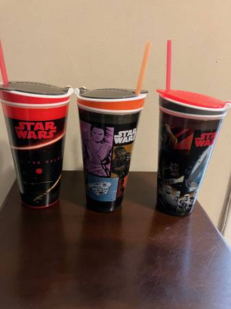 3STAR WARS snack cup w/straw 8oz cup, 4oz snack cup Never used. $5 for all 3 NO EMAILS PLEASE CALL