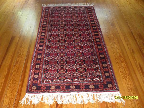 This vibrantly colored rug has been in my family for at least 60 years and is in very good condition. Photographs display front then back. Will entertain offers.