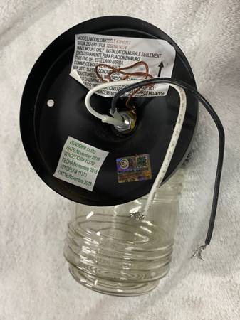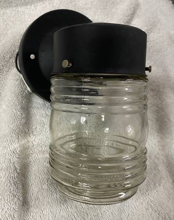 Excellent condition sconce light. Black metal with glass container. Jar lamp / container is 6 inches tall.