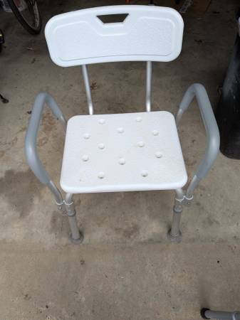 shower chair and portable commode . chair got rained on a few times and the commode was never used