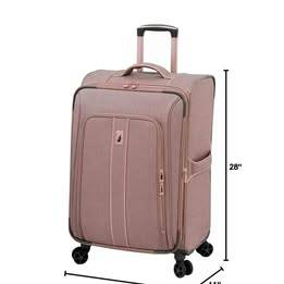 EVA foam padded front, expands 2" for additional packing capacity, corner guards, self-repairing zippers