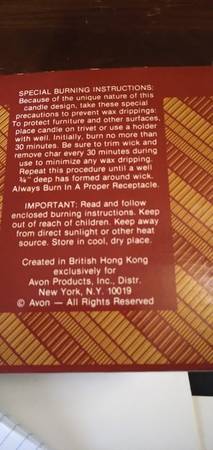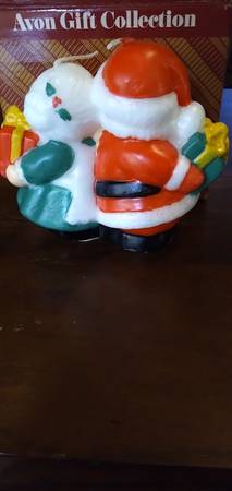 1980s Avon's "Exchanging Gifts" featuring Santa and Mrs. Claus. The 3.5" has a double wick. Part of the Avon Gift Collection. Like new in original package. $15