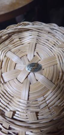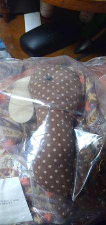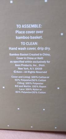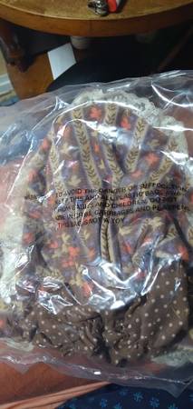 A 1980s basket with a cloth Turkey cover. The basket has about a 6" diameter and about 4" deep. The turkey cover has never been out of the sealed plastic bag it's in. I did not want to cut open bag for better pictures. It is new old stock in perfect condition. Comes in original box also. $15