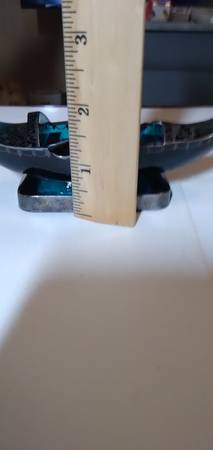 This ashtray is made from a heavy thick green glass and trimmed in silver for a unique, beautiful, ashtray. It is in excellent vintage condition, no cracks. no chips, no repairs, a really beautiful...