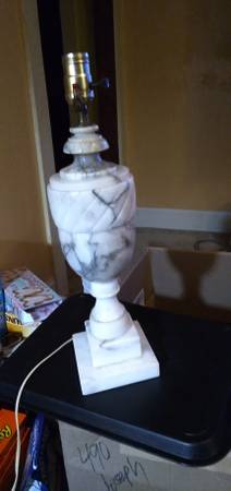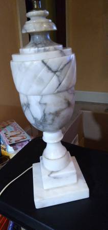 This Italian carved marble table lamp. It was hand carved in a Neo-Classical style in the 1950s. The lamp works as it should, no shade