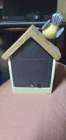 This is an Avon clock with a design by Marjdein Bastin, often found in the "Nature's Sketchbook" collection. The clock features a birdhouse design with two bluebirds (all hand-painted) reflecting Marjodein Bastin's nature-themed artwork. New Vintage, never used, comes in original box. Takes 1 AA battery. $18