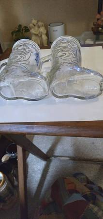 Pabst Blue Ribbon (PBR) Cowboy Shaped Beer Glass, featuring the distinctive blue ribbon logo. PBR is an American lager beer with a long history, established in Milwaukee in 1844. These glasses are in excellent shape. Each glass measures 6" Tall, the shoe part of the boot is 3.5" Long and 2.5" Wide. These Vintage PBR glasses wood look good any man cave or pool room. $15 for the pair.