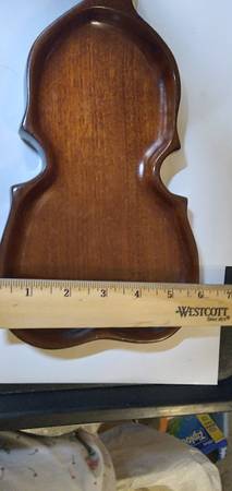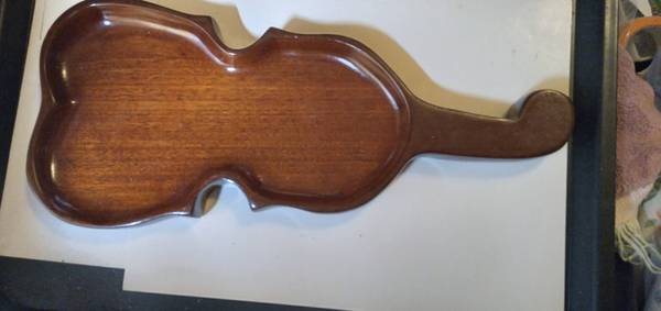 Wooden violin-shaped serving tray or trinket dish. Ideal for presenting appetizers, cheese, or other small food items, A decorative accent in a music themed room or as a unique catch-all tray for...