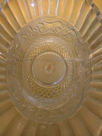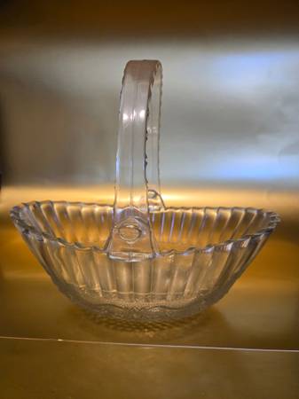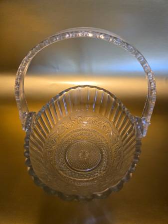 Vintage - Expertly crafted in the 1970s! "Diamond Point" pattern! Etched flower design! Removable acrylic handle! Perfect for flowers, candy, fruit etc! 8 3/4' W x 7" x 8" H Bowl is 3" deep Call/Text