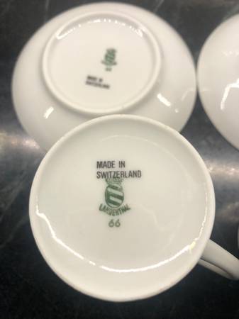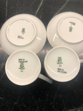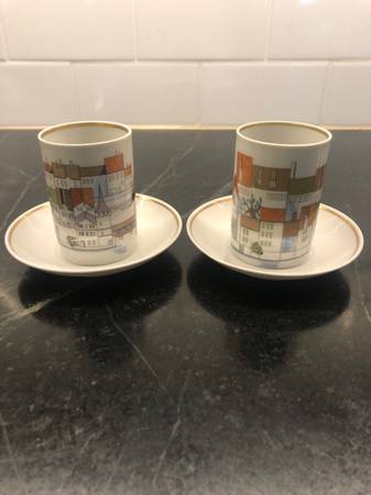 Set of 2 Langenthal CITYSCAPES Suisse Porcelain ESPRESSO Cups & Saucers. Featured City Scapes are BASEL, & LUZERN. No Chips! Cups 2 5/8” with a 1 3/4” opening and a 4 oz capacity. Saucer is...
