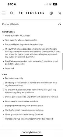 I purchased this brand new Pottery Barn Bosworth Hand-Tufted Wool Rug off the website for $1,700 and missed the return window. My mistake is your opportunity to get this 100% will rug out a fraction of the price.