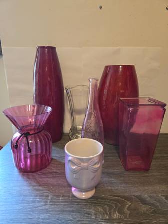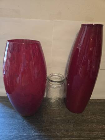 Small clear glass one in 2nd photo between the 2 red ones 6 1/2 " x 3 1/2" $1
