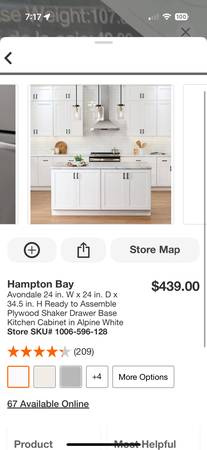 I have (2) Avondale 24 in. W x 24 in. D x 34.5 in. H Ready to Assemble Plywood Shaker Drawer Base Kitchen Cabinet in Alpine White in their original packaging ready for assembly. Retails for $440 plus tax. $250 a piece or if you want both $475.