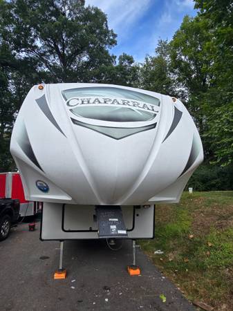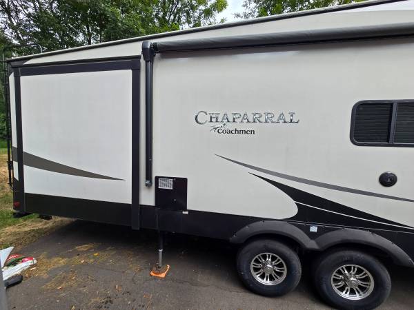 With its sleek exterior design, the Coachmen Chaparral is sure to turn heads wherever you go. The aerodynamic profile and stylish graphics give this fifth wheel a modern look that complements its high-quality construction.