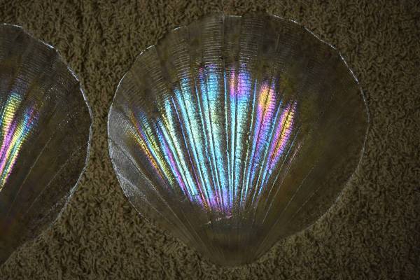 Perfect for serving that Maryland Crab, Lobster, Cod, or whatever seafood just might be. They were originally $20.00 each at the time of purchase. Each plate shines and virtually glows with beautiful rainbow colors.
