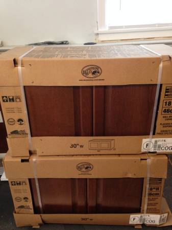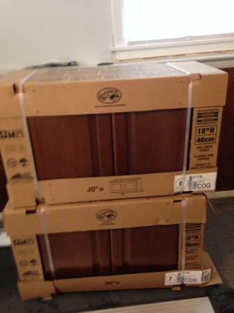 The cabinets are new and in the boxes. They are 30" wide, 12" deep, and 18" high. I bought them and can't use them in the location intended and it was too late to take them back to the store. They...
