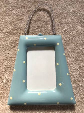 Blue Polka Dot Purse Shaped Picture Frame with Beaded Handle
