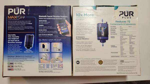 PUR PLUS Vertical Faucet Mount Water Filtration System, Sea Glass, FM2700G - Brand New + PUR PLUS Faucet Mount Water Filtration System with Bluetooth, Chrome – Horizontal Faucet Mount for Crisp,...