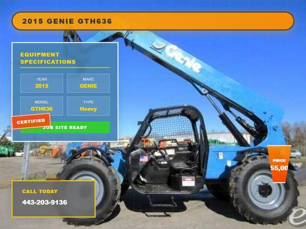 Picture 24: 2015 Genie GTH5519 Capacity: 5,500 lbs Hours: 587 Serial: GTH5515B-4324 Condition: Used Stock: 2765 S Price: $42,000 5,500 lb. Capacity, 19' Lift Height, 4 WDR, 3 Way Steering, 48" Fork Carriage, 48" Pallet Forks, Quick Connect Fork Carriage, Air Turf Tires, New Deutz Diesel, Engine Replaced 06/2019, Starts and Runs out excellent, No Leaks, Serviced and Job Ready! 587 Hours