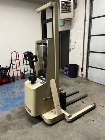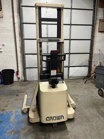 Crown 20MT Walkie Stacker Forklift, 2000 lbs Capacity, Electric with Built In Charger, Recent Batteries, Lightly Used, Original Owner, Never Outdoors, Operates, Lifts and Drives Perfectly. Perfect for any warehouse or loading dock. Located in Columbia Md.