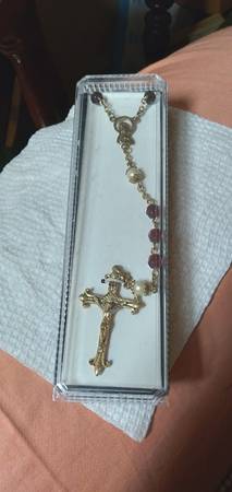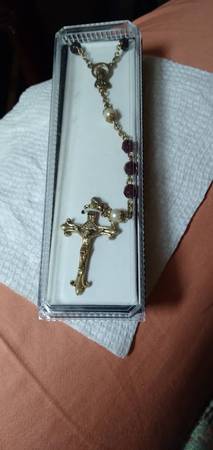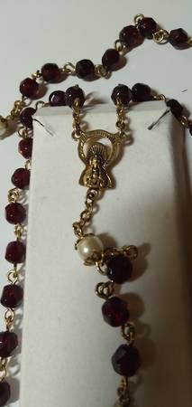 This Rosary has garnet colored beads that was made and released for Avon in 2000. They have the same intricate detail as all Avon collectibles. This was the first time out of box for pictures and...