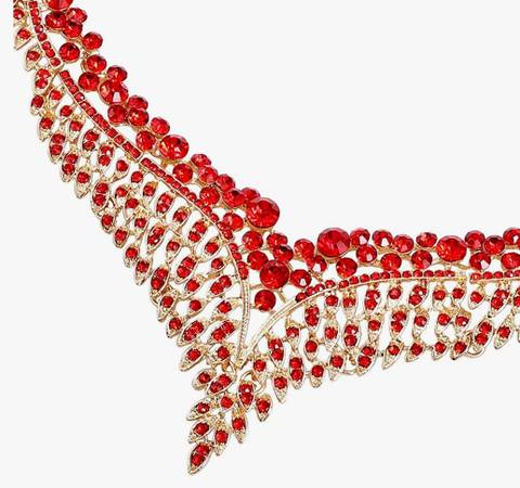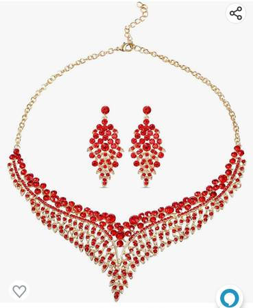Brand new. Three-piece red crystal necklace set. Elegant necklace, Excellent quality. Includes Statement Necklace and 2-inch long red Crystal matching earrings in goldtone setting.