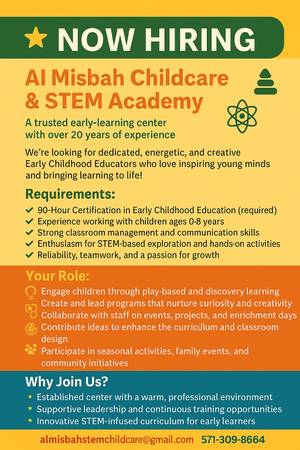 Al-Misbah Childcare & STEM Academy is now enrolling at our new Catonsville location!
