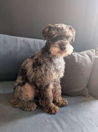 Barrington is an 8 year old aussiedoodle that we recently rescued. He is very skittish but friendly. He is wearing a red collar. DO NOT CHASE. instead, try to lure him with treats! He was last seen at 2:30pm on 11/2 near the Popeyes on N Howard street, heading towards North Ave. Please reach out with any sightings! There is a reward for his successful return!