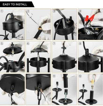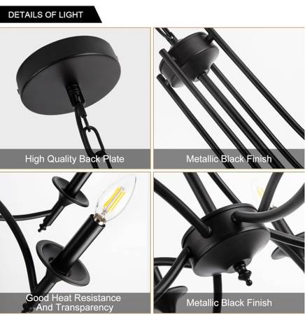 Industrial Candle Chandelier Modern Farmhouse Hanging Pendant Light Fixture with 8-Light Black Iron Classic Rural Candle Ceiling for Dining Room Living Room Bedroom Kitchen Island Foyer....NEW , OUT OF BOX AND ALREADY ASSEMBLED AND READY TO BE INSTALLED... MAKE AN OFFER EVERYTHING MUST GO..