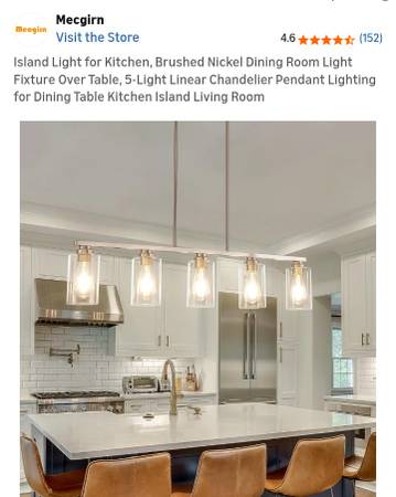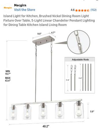 Island Light for Kitchen, Brushed Nickel Dining Room Light Fixture Over Table, 5-Light Linear Chandelier Pendant Lighting for Dining Table Kitchen Island Living Room....NEW IN BOX