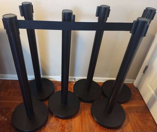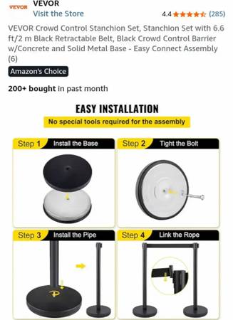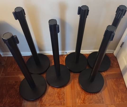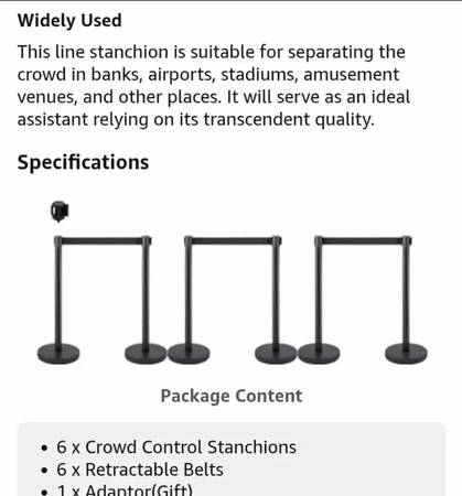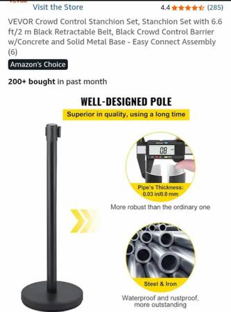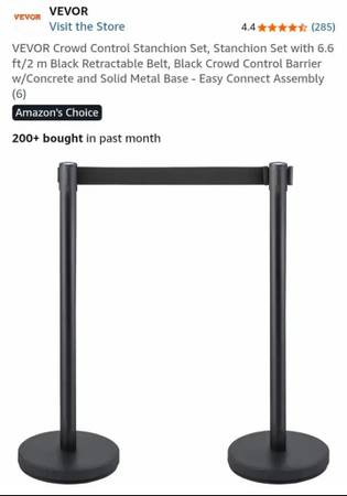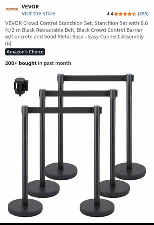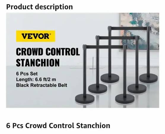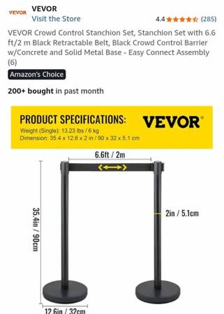 NEW-VEVOR Crowd Control Stanchion Set, Stanchion Set with 6.6 ft/2 m Black Retractable Belt, Black Crowd Control Barrier w/Concrete and Solid Metal Base - Easy Connect Assembly (6)...NEW