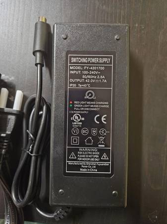 5 Switching Power Supply Chargers: Shenzhen Model: FY-4201700 _ Input: 100-240V _ Output: 42.0V _ 1.7A UL Listed. $10 each of $40 for all 5.