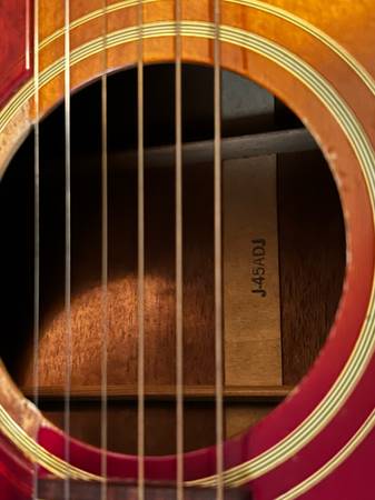 I'm selling a 1966 Gibson J-45 ADJ acoustic guitar in cherry sunburst. It plays beautifully and is in great shape for a nearly 60 year old guitar!