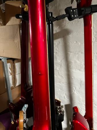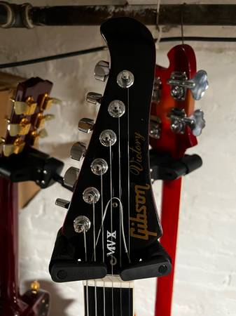 Selling a very rare 1981 Gibson Victory MVX in cherry red. This is a unique three-pickup model Gibson discontinued and is now bringing back, so I expect it will go up in value over the next few years.