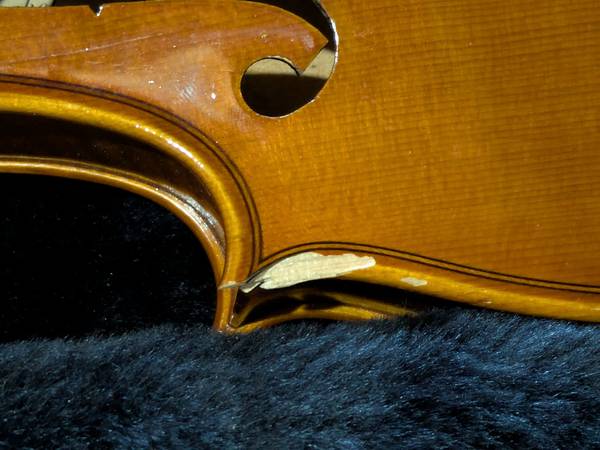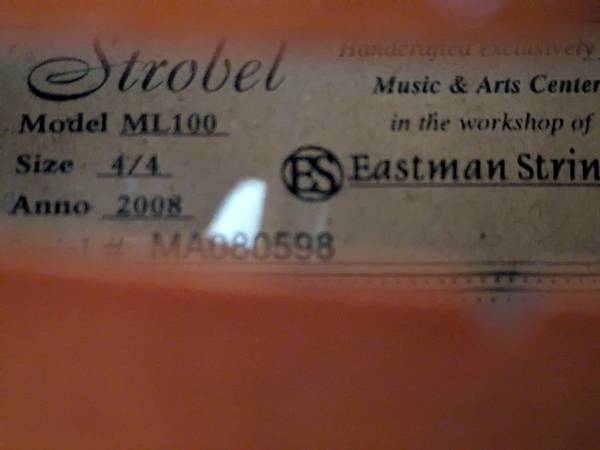 Full size student violin. 2008 manufacture date. Single owner. Comes with shoulder rest. Exterior has scratches and a chipped corner. Carrying case has a crack. See photos for condition. Sold as-is....