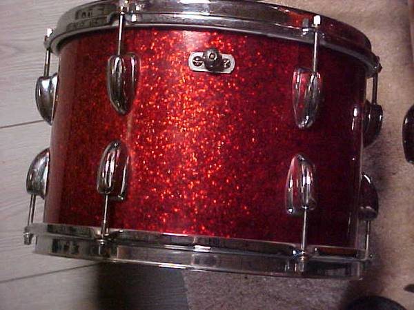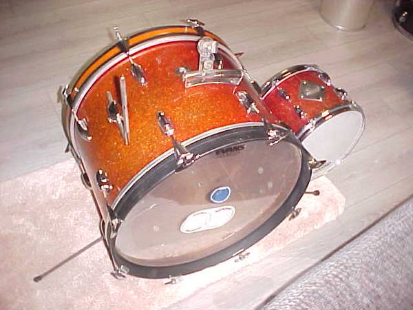 1964 RED/ORANGE FADE SPARKLE SLINGERLAND 20X14BASS AND -12X8 RACKTOM JUST NEEDS A FLOOR TOM FOR A NICE SET THE HARDWARE IS EXCELLENT AND CLEAN , COMES WITH RAIL CONSOLETTE VERY CLEAN A LITTLE FADE...