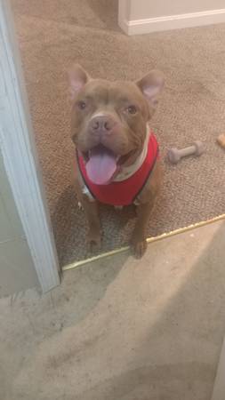 8 year old staffy /pitbull mix. Downsizing and having less time with him. Loving companion,pretty laid back. Still very active. Can go on long walks or jogs with you. House and crate trained. Sit,stay,out ,no commands are effective. Solid old man. Just needs love and time. Free to a good home. He is fixed.