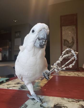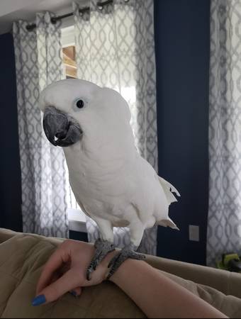 Very sweet 18 year old Umbrella Cockatoo His name is Baby Rehoming fee of $2,000 Located in Westminster MD 21158 15 minutes from the “Westminster community pond”