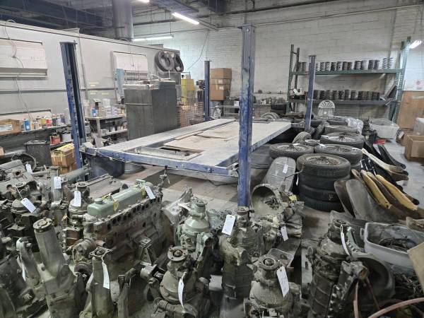 Assets Include, but are not limited to: Vintage British Car Signage, a 1954 Sunbeam Alpine Convertible (partially restored with parts), Thousands of Used & Vintage New/Old Stock British Auto Parts for vehicles such as: Austin Healey, MG, Triumph, Jaguar and more. Included are: Interior Upholstery, Seat Frames, Motors, Transmissions, Body Parts, Chrome Trim Pieces, a Nearly Complete 1965 Jaguar XKE 4.2L Engine, Factory & Vintage Aftermarket Steering Wheels (Les Leston, Moto-Lita), Badging & Insignias, Electrical Parts, Suspension, Wire Wheels, Accessories, Convertible Top Frames, Tonneau Covers, and so much more. PLUS, all the Company Tools & Equipment, such as: a Professional Body Shop Paint Booth, Sand Blast Cabinet, Three Large Air Compressors, Engine Hoists, Fastenal Cabinets, Mechanics Tool Boxes, Dozens of Jack Stands, Pneumatic Tools, Professional Paint Supplies & Spray Guns, Ratchet & Socket Sets, Specialty Tools and Equipment, a 2010 Chevrolet Suburban, Honda Accord Coupe, HD Car Hauling Trailer – over 12,000 Square Feet of Automotive Items to be auctioned.