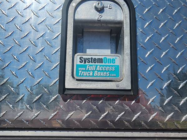 System One Ladder Rack for an 8 ft. bed extra cab. Complete with 4 Ratchet straps. 2- 96" System one Tool boxes with shelfs and divider inserts